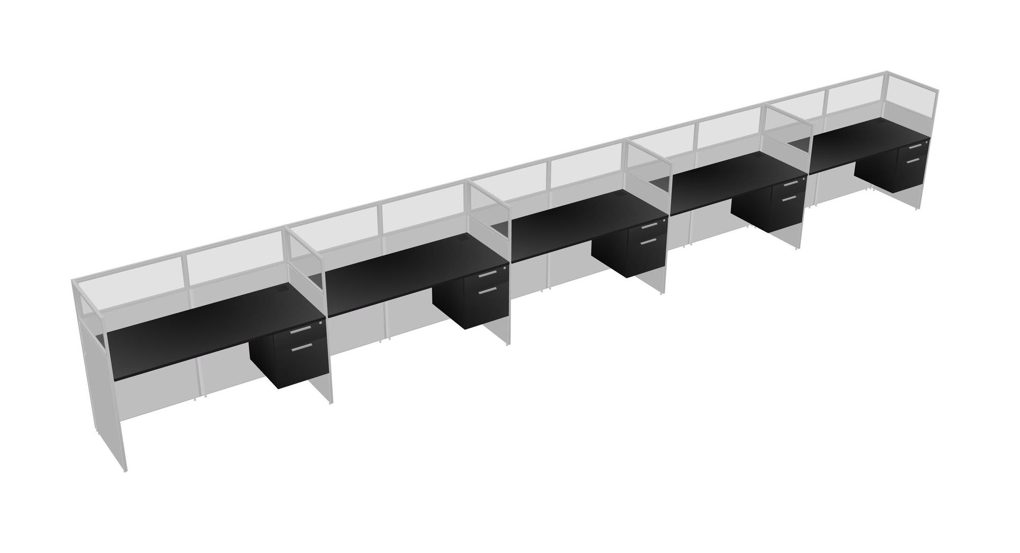 Black Shared Rectangular Office Cubicle Panel System With Hanging Drawers For 5 Persons