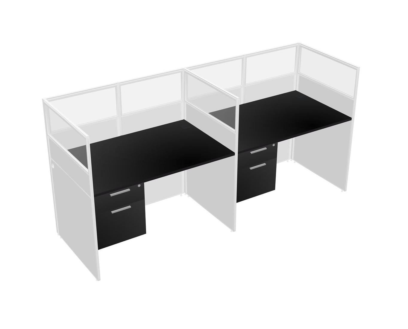 Black Shared Rectangular Office Cubicle Panel System With Hanging Drawers For 2 Persons