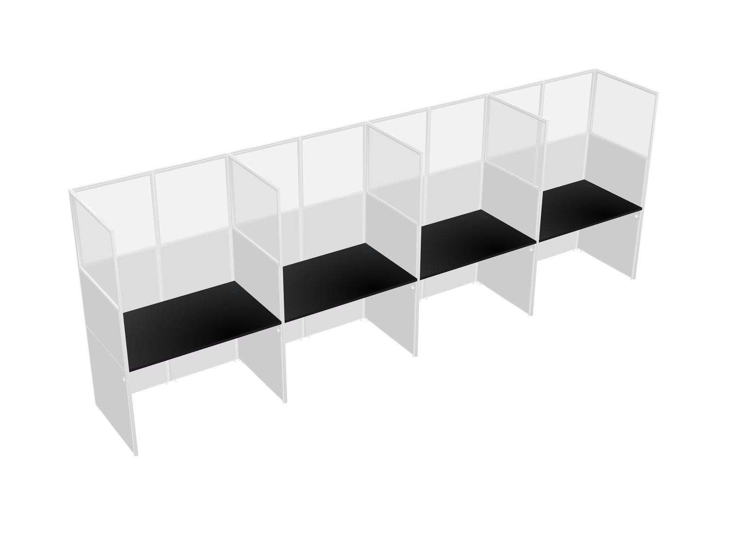 Black Shared Rectangular Office Cubicle Panel System For 4 Persons