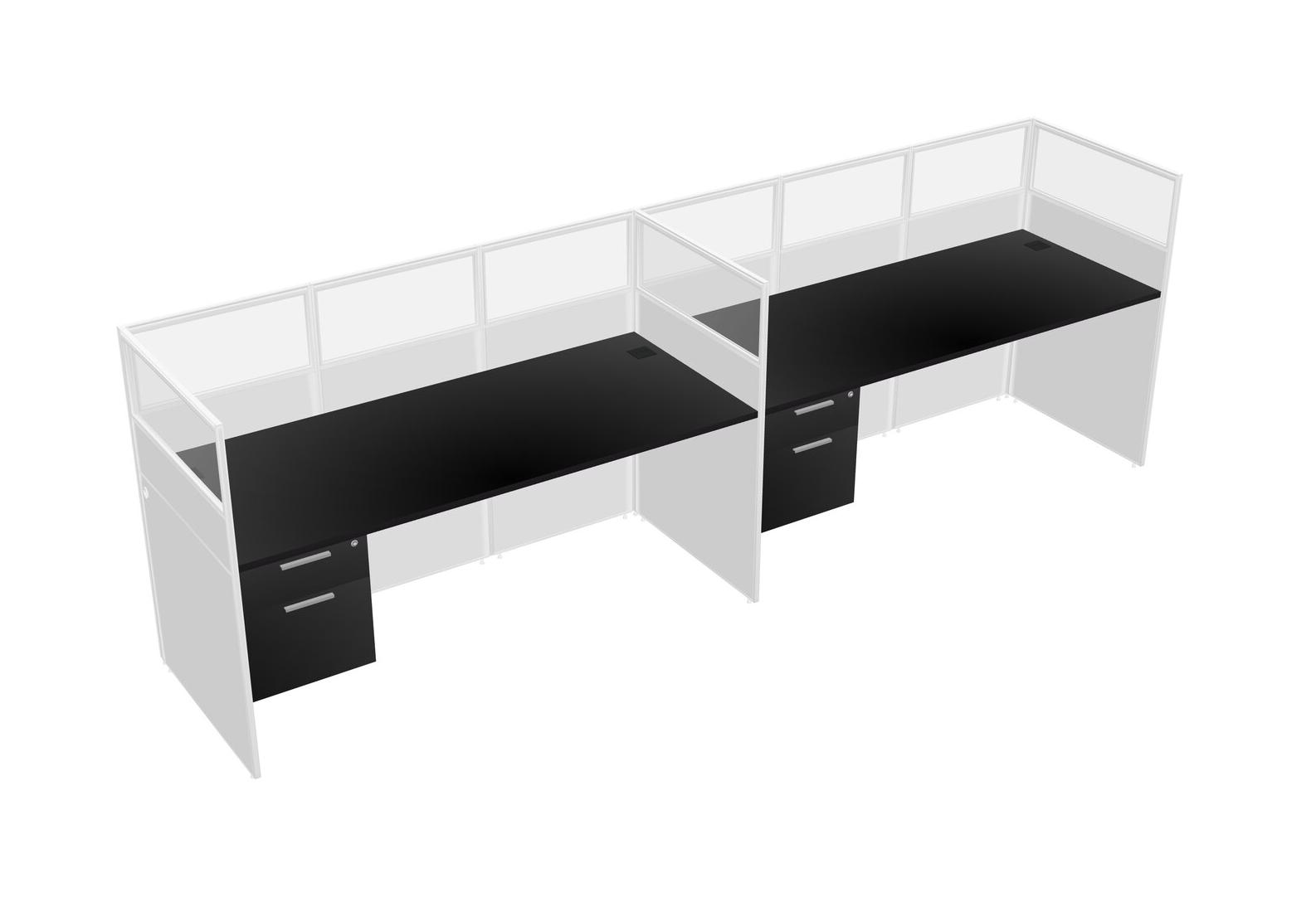 Black Shared Rectangular Office Cubicle Panel System With Hanging Drawers For 2 Persons