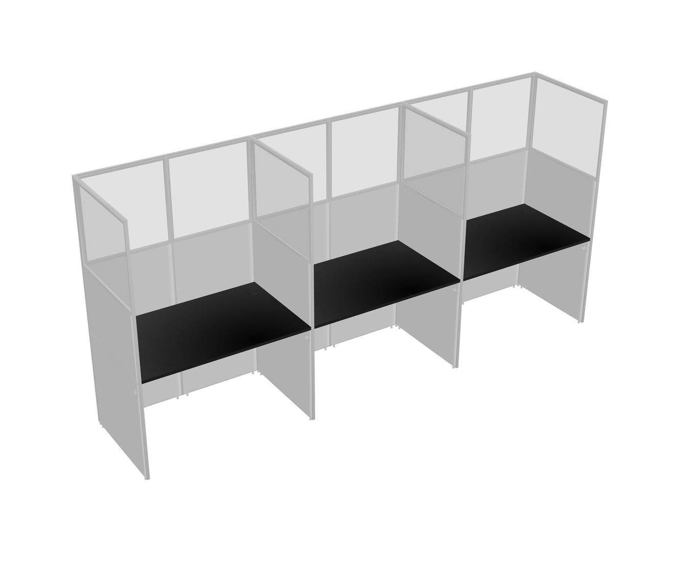 Black Shared Rectangular Office Cubicle Panel System For 3 Persons