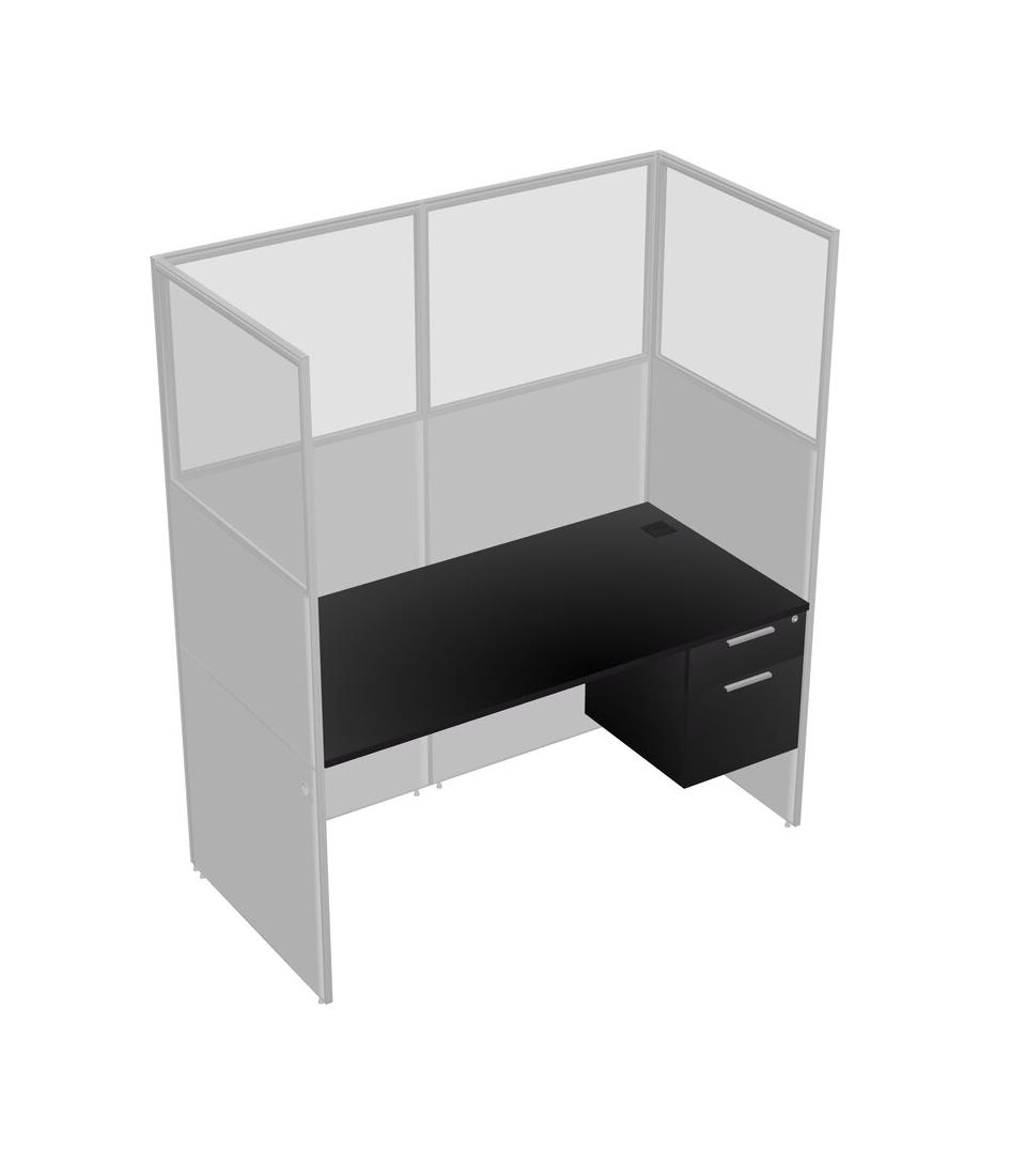 Black Shared Rectangular Office Cubicle Panel System With Hanging Drawers For 1 Persons