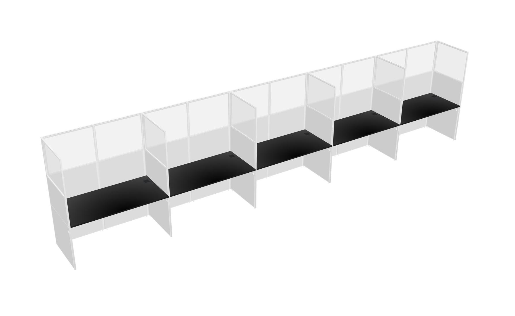 Black Shared Rectangular Office Cubicle Panel System For 5 Persons