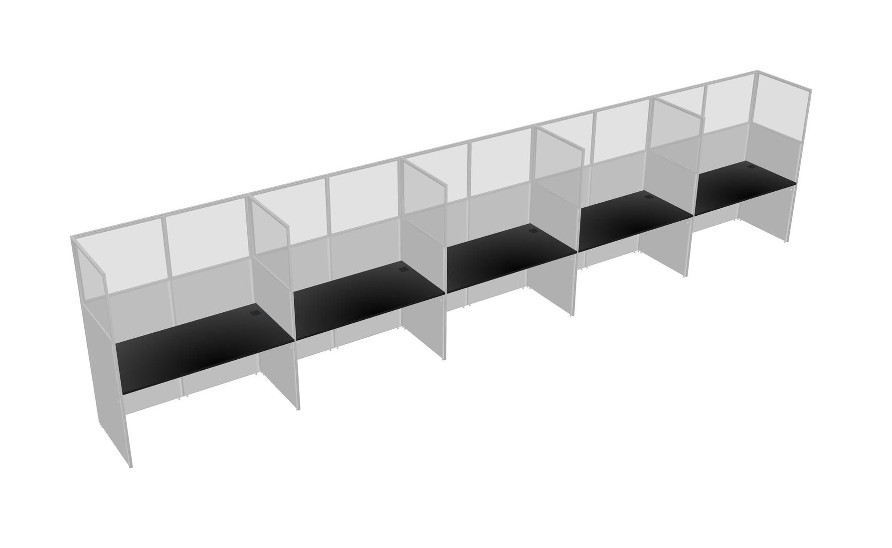 Black Shared Rectangular Office Cubicle Panel System For 5 Persons