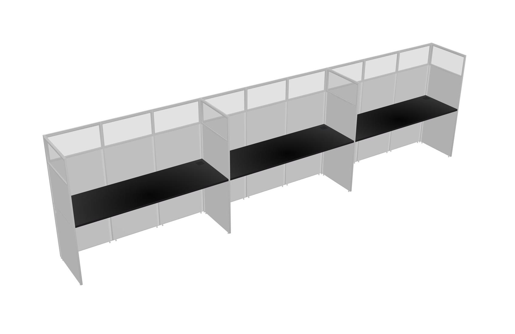Black Shared Rectangular Office Cubicle Panel System For 3 Persons