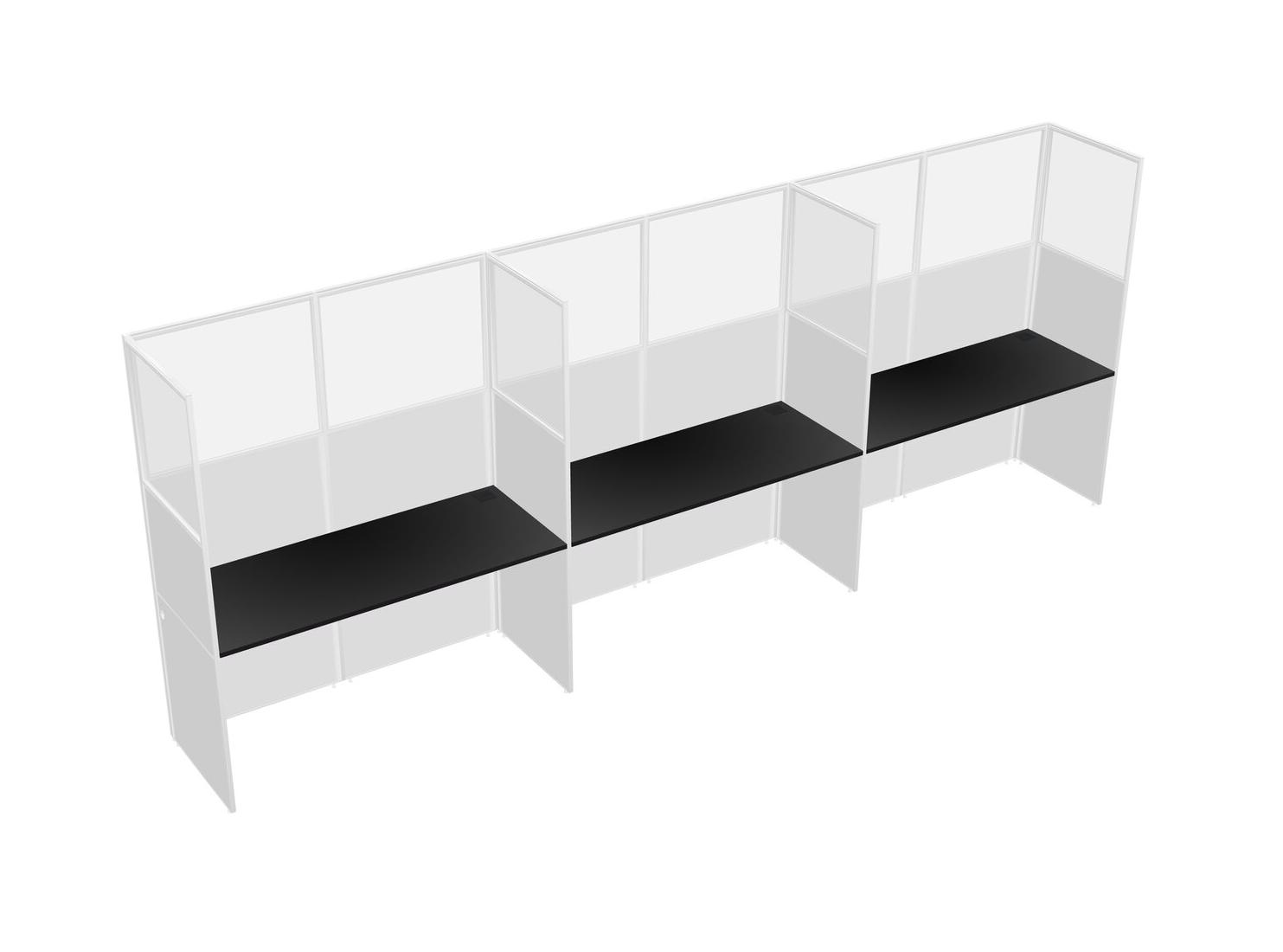Black Shared Rectangular Office Cubicle Panel System For 3 Persons