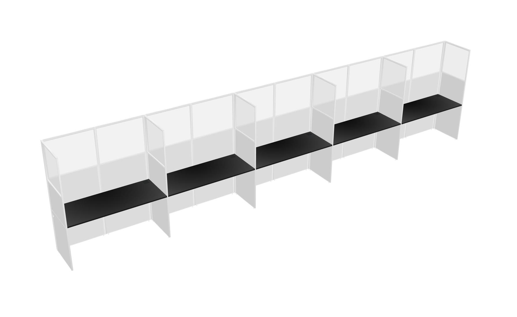 Black Shared Rectangular Office Cubicle Panel System For 5 Persons
