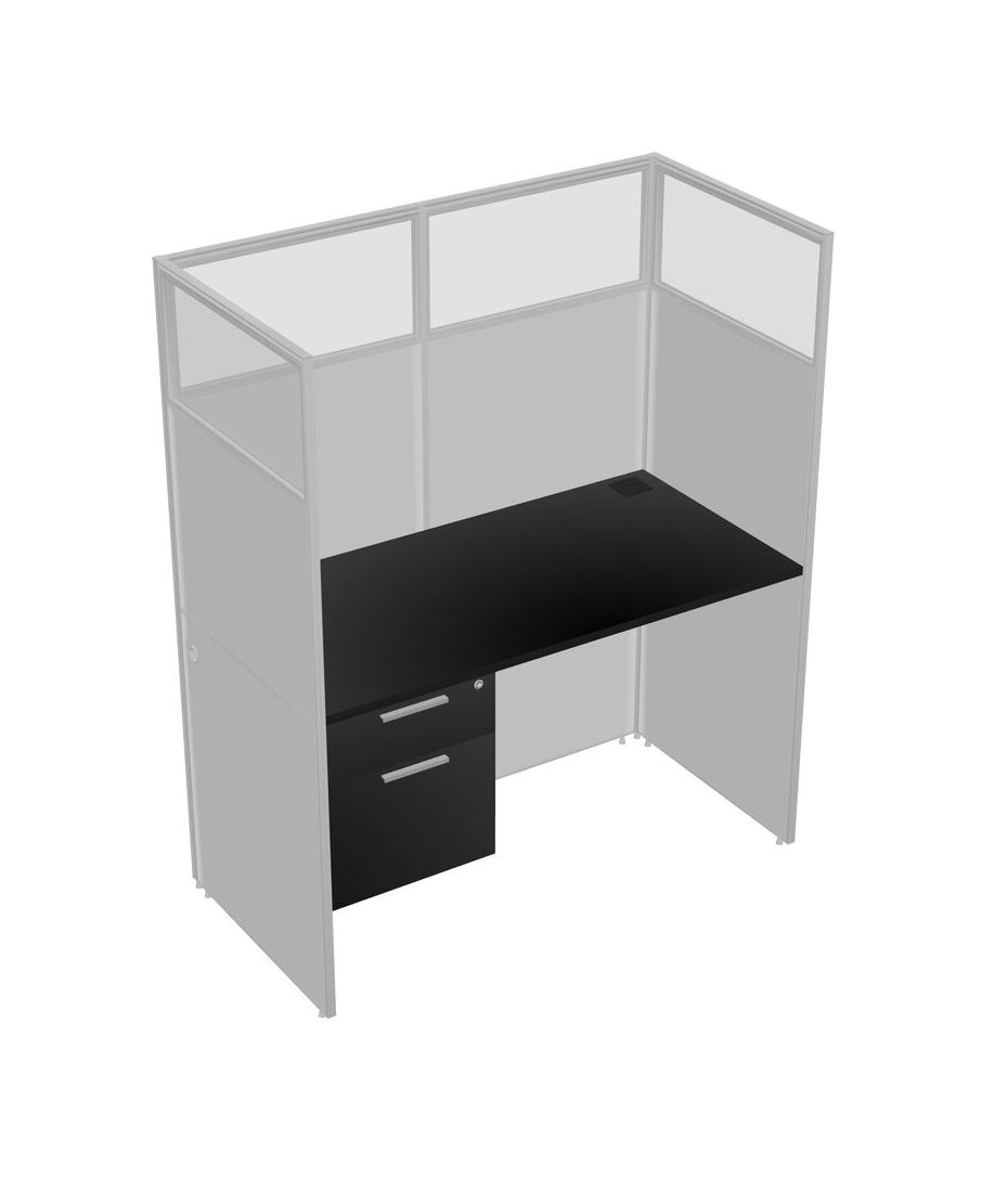 Black Shared Rectangular Office Cubicle Panel System With Hanging Drawers For 1 Persons