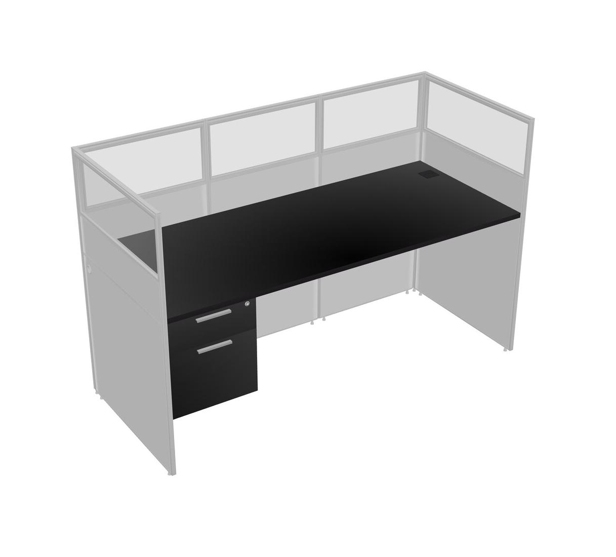 Black Shared Rectangular Office Cubicle Panel System With Hanging Drawers For 1 Persons