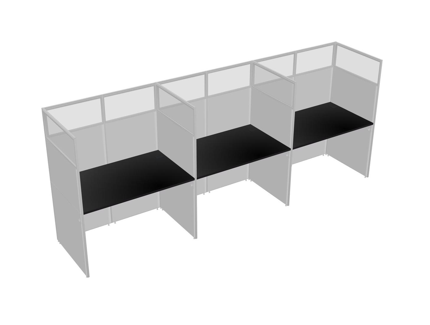 Black Shared Rectangular Office Cubicle Panel System For 3 Persons