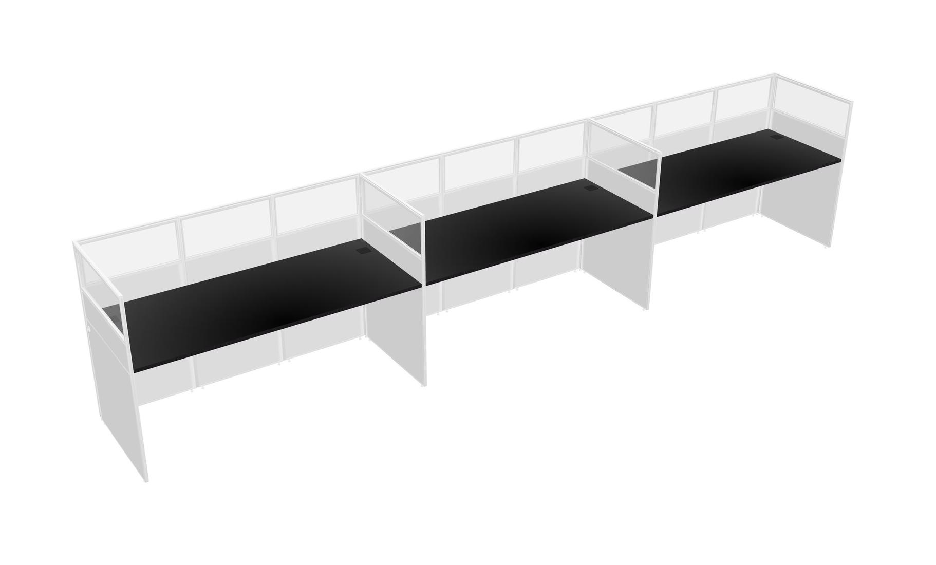 Black Shared Rectangular Office Cubicle Panel System For 3 Persons