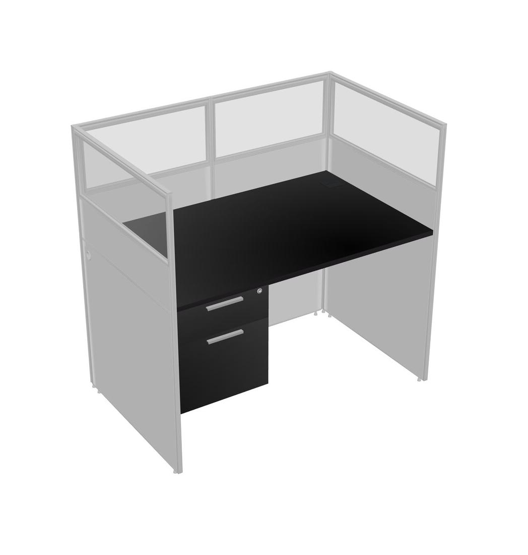 Black Shared Rectangular Office Cubicle Panel System With Hanging Drawers For 1 Persons