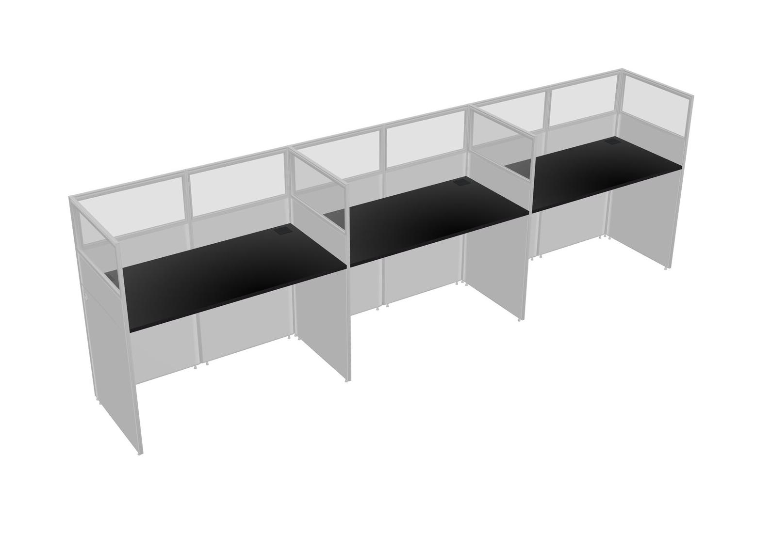 Black Shared Rectangular Office Cubicle Panel System For 3 Persons