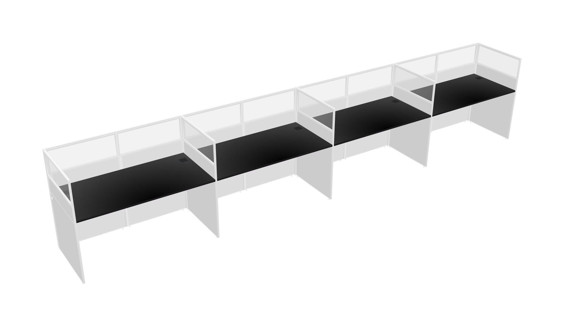 Black Shared Rectangular Office Cubicle Panel System For 4 Persons