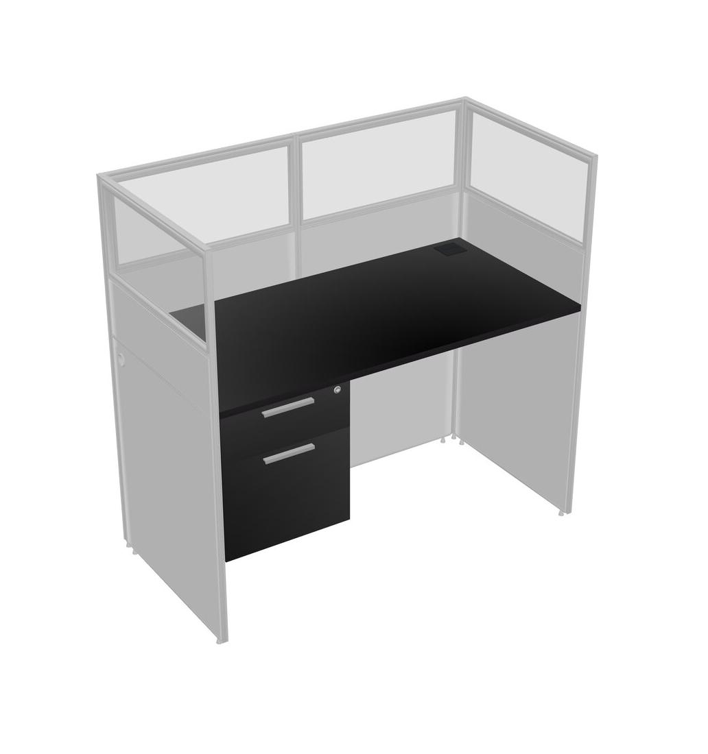 Black Shared Rectangular Office Cubicle Panel System With Hanging Drawers For 1 Persons