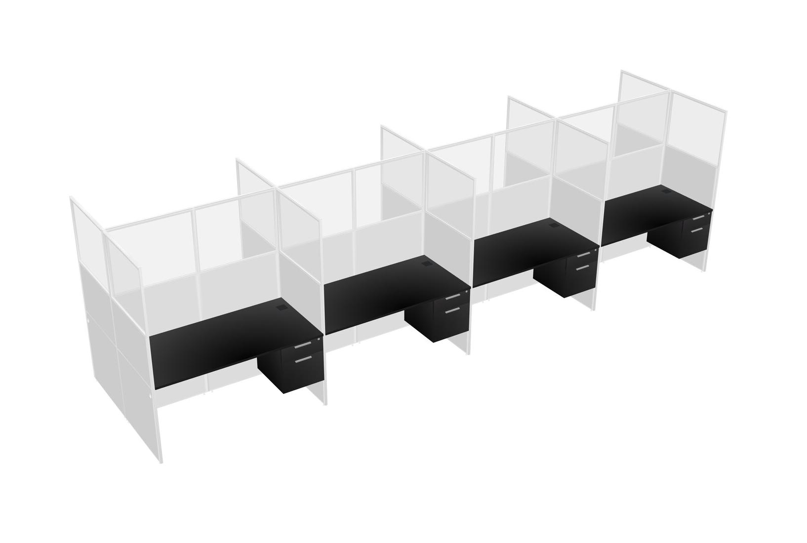 Black Shared Rectangular Office Cubicle Panel System With Hanging Drawers For 8 Persons