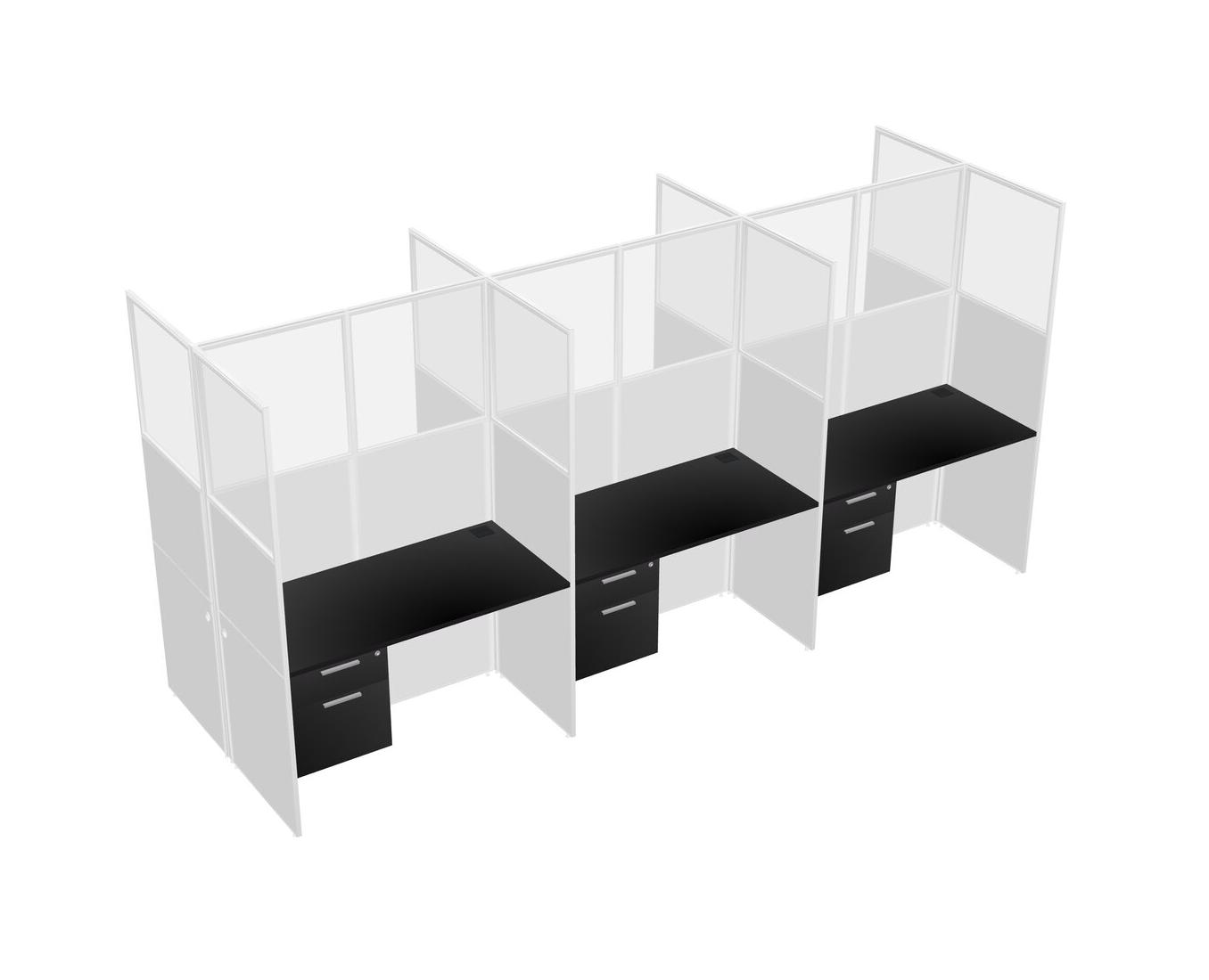 Black Shared Rectangular Office Cubicle Panel System With Hanging Drawers For 6 Persons