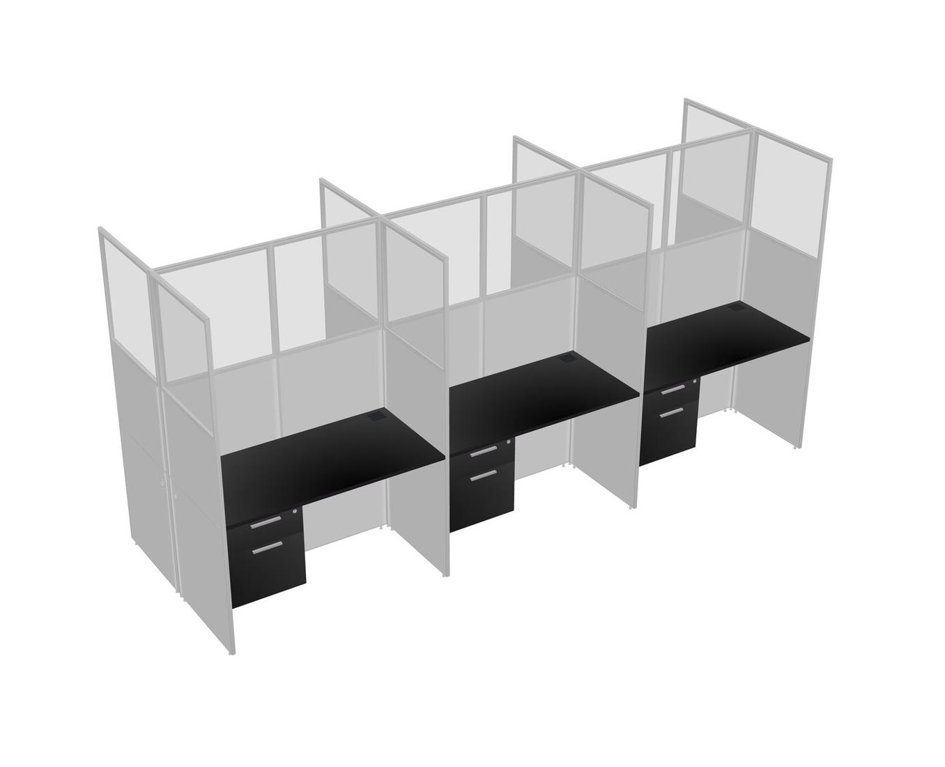 Black Shared Rectangular Office Cubicle Panel System With Hanging Drawers For 6 Persons