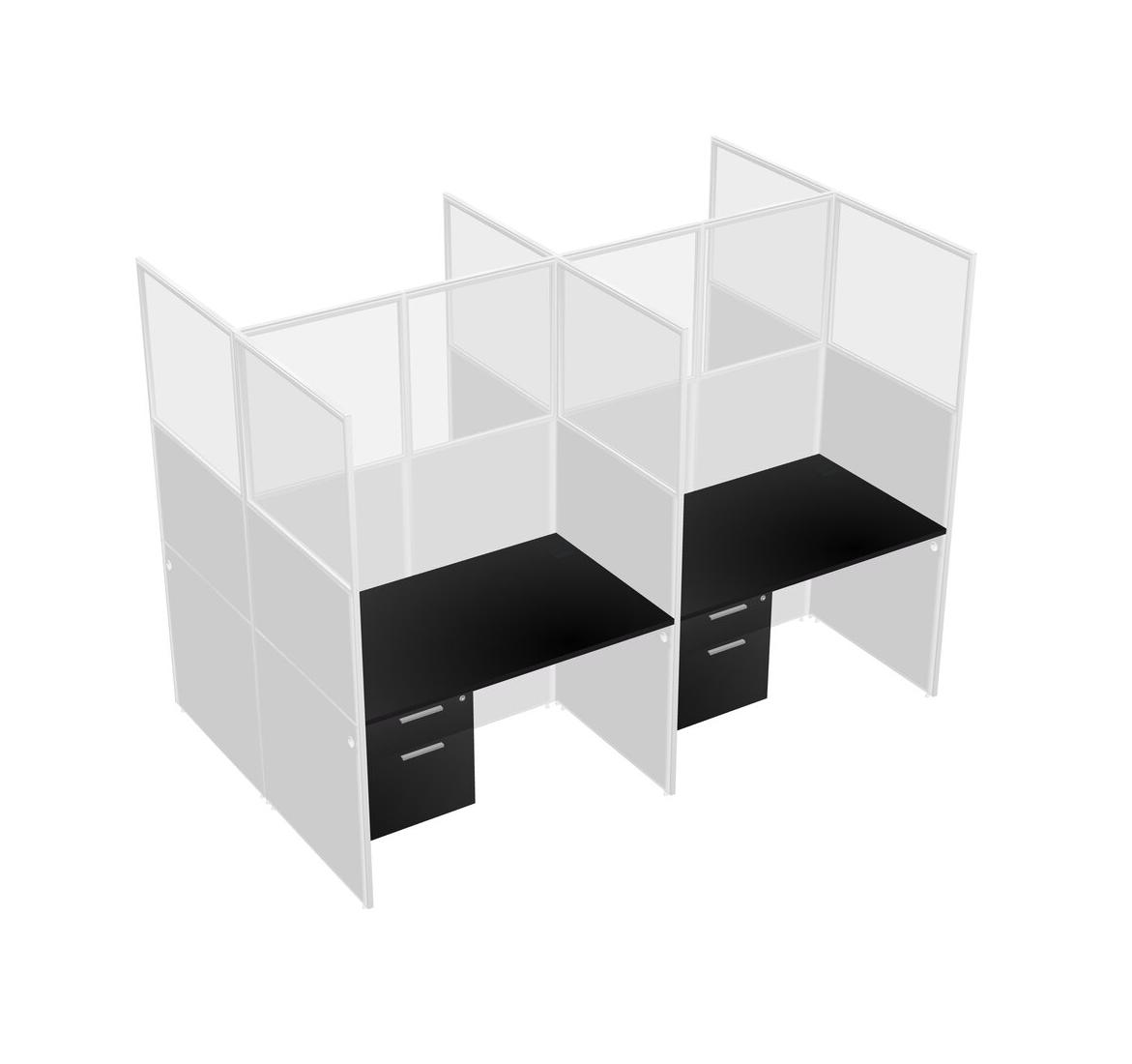 Black Shared Rectangular Office Cubicle Panel System With Hanging Drawers For 4 Persons