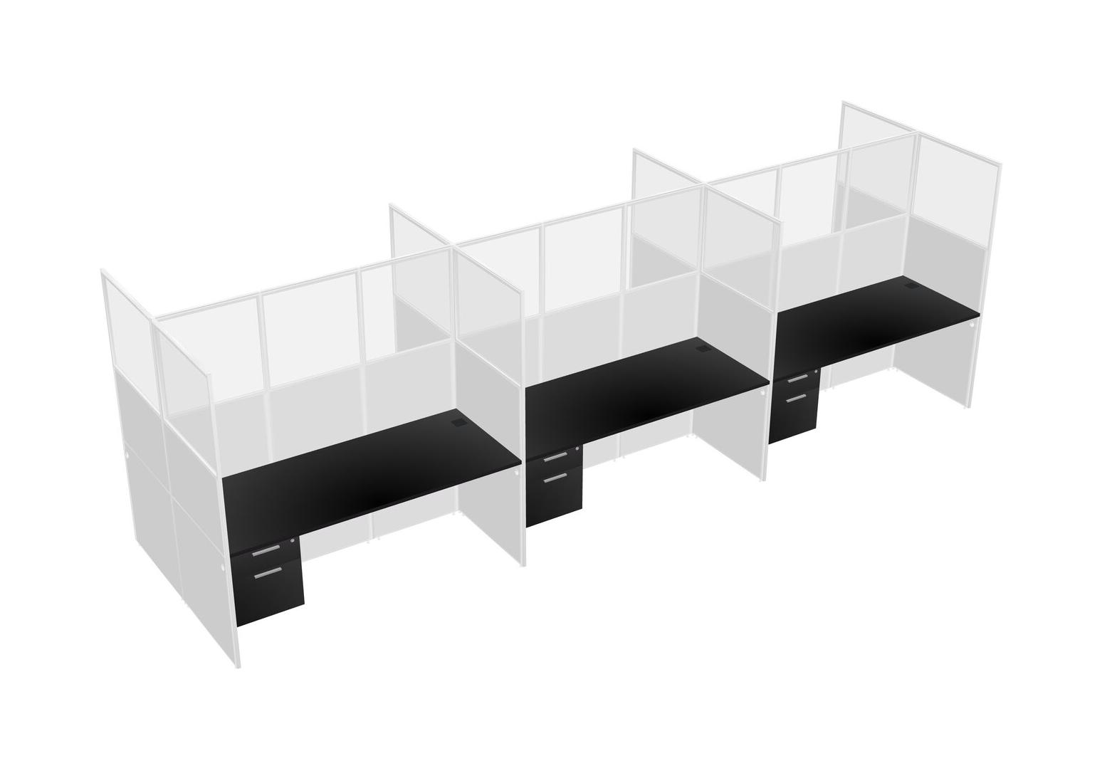 Black Shared Rectangular Office Cubicle Panel System With Hanging Drawers For 6 Persons