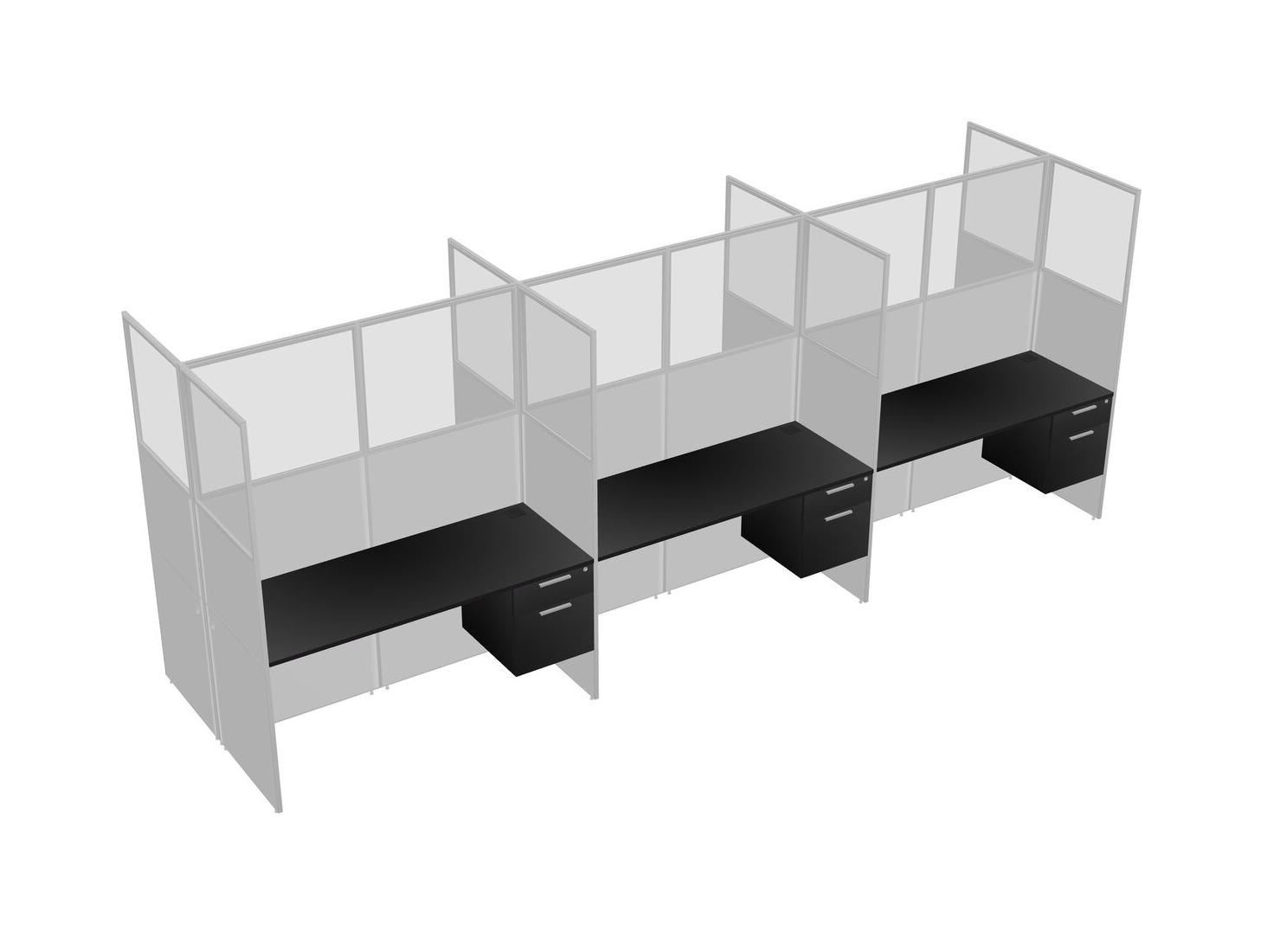 Black Shared Rectangular Office Cubicle Panel System With Hanging Drawers For 6 Persons