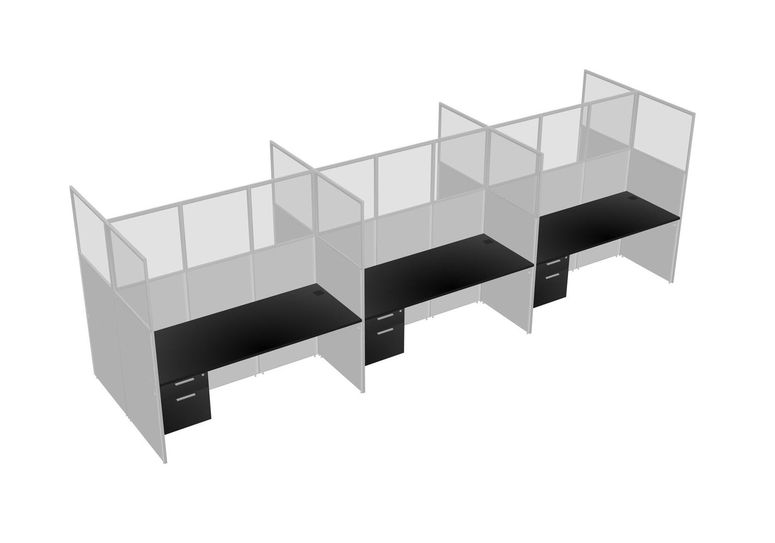 Black Shared Rectangular Office Cubicle Panel System With Hanging Drawers For 6 Persons