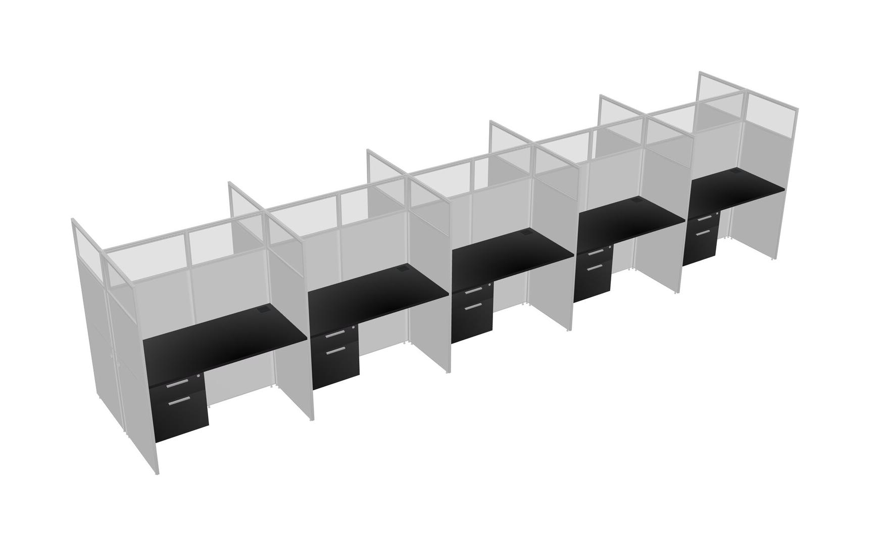 Black Shared Rectangular Office Cubicle Panel System With Hanging Drawers For 10 Persons