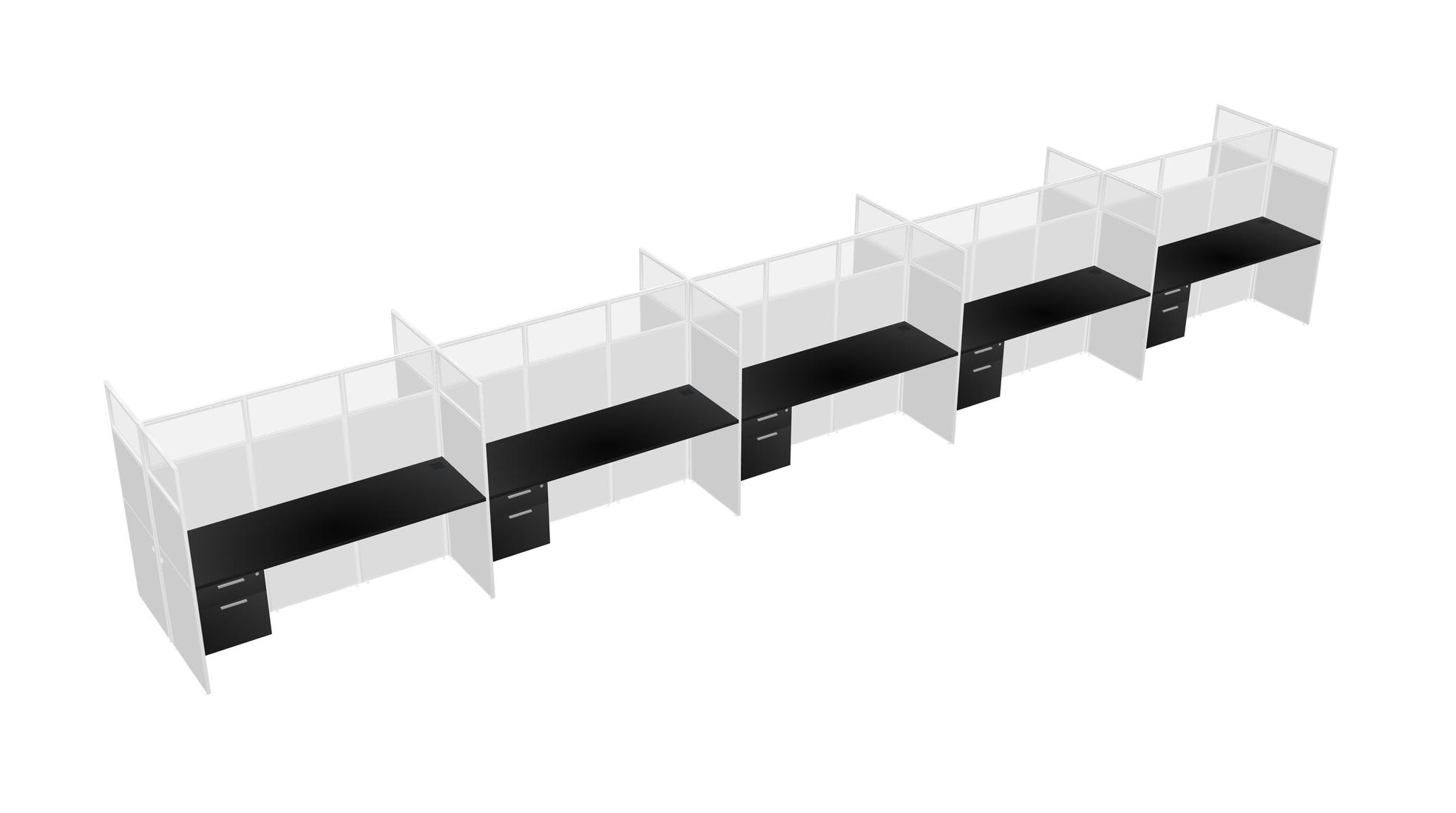 Black Shared Rectangular Office Cubicle Panel System With Hanging Drawers For 10 Persons