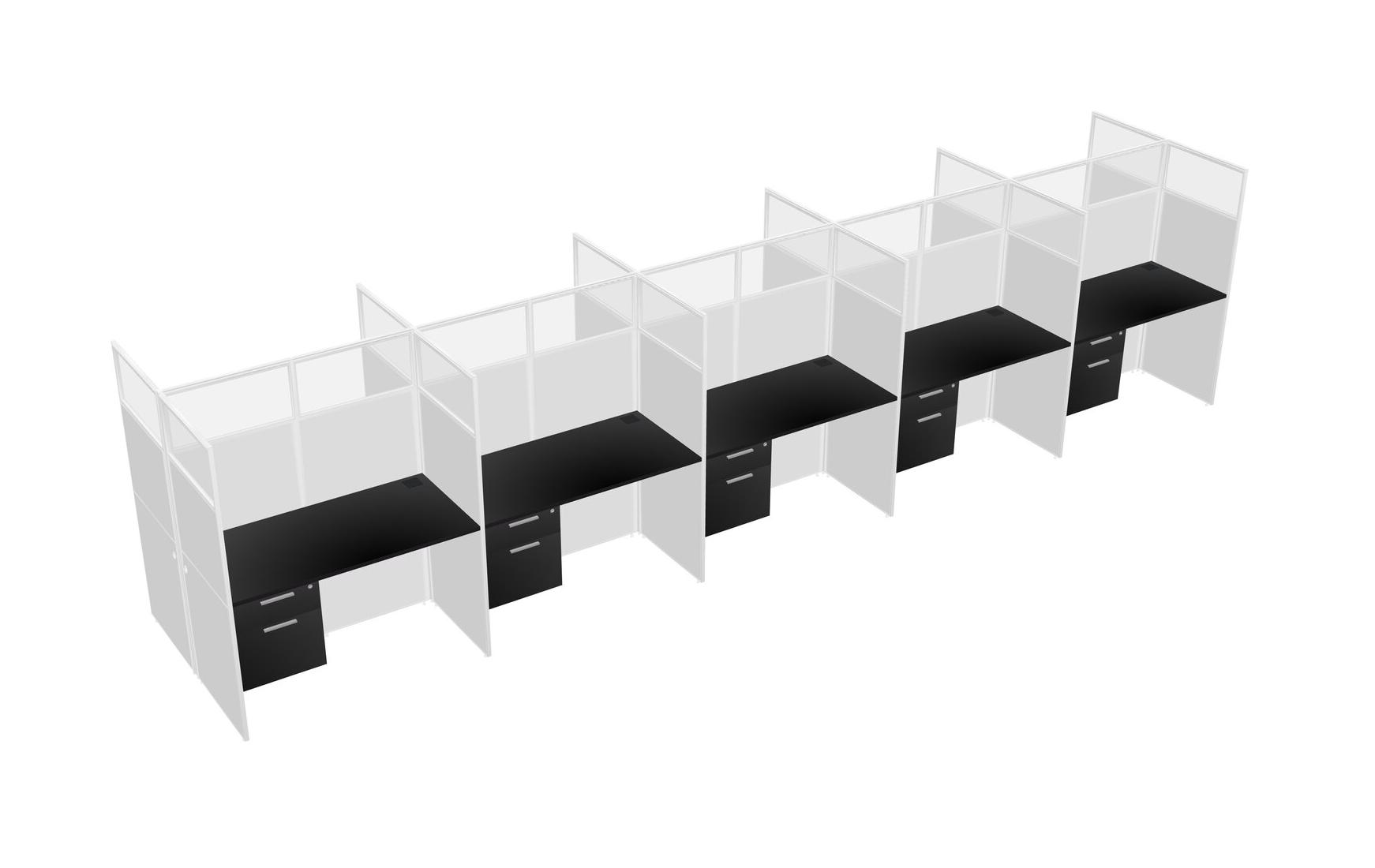 Black Shared Rectangular Office Cubicle Panel System With Hanging Drawers For 10 Persons