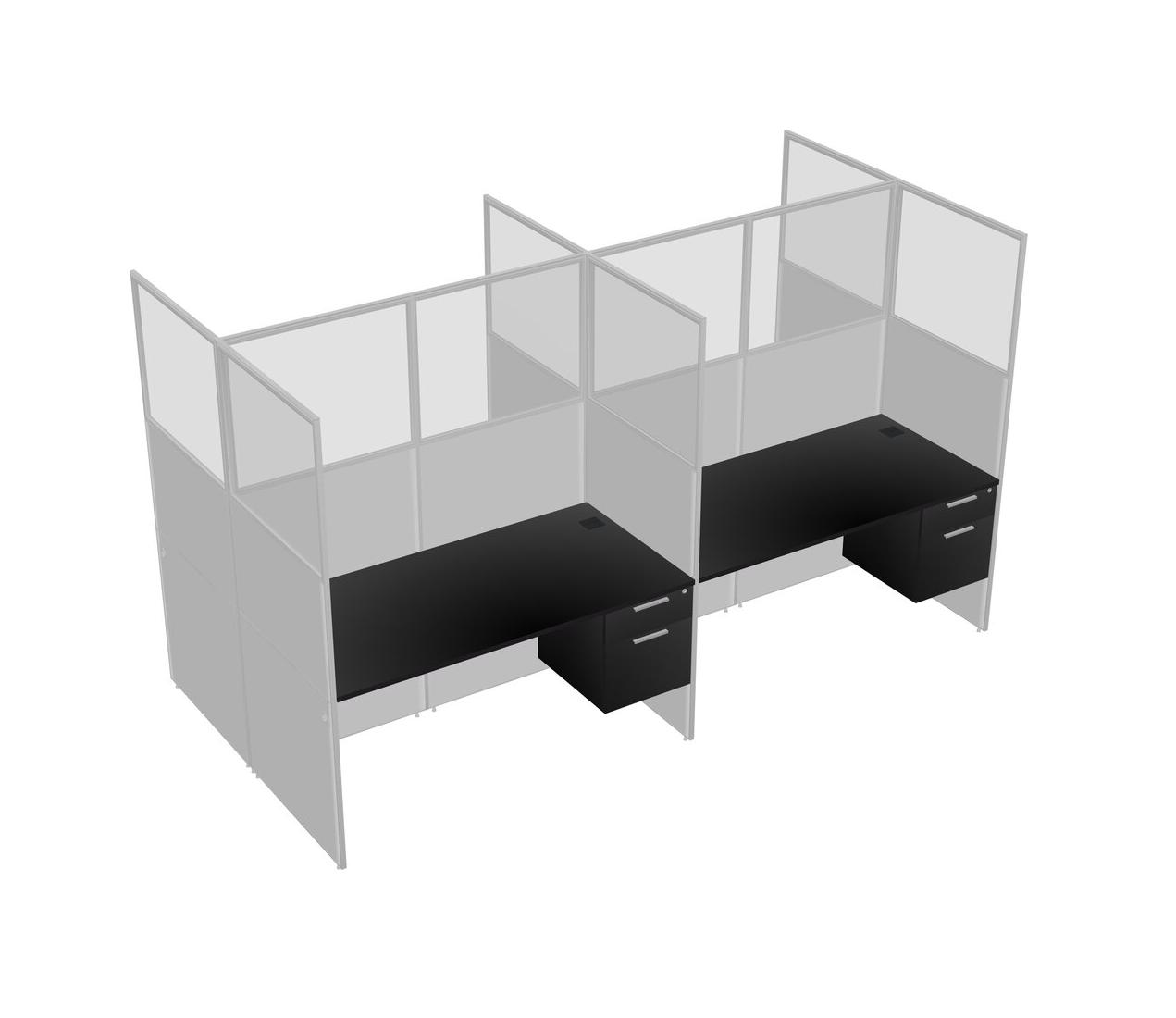 Black Shared Rectangular Office Cubicle Panel System With Hanging Drawers For 4 Persons