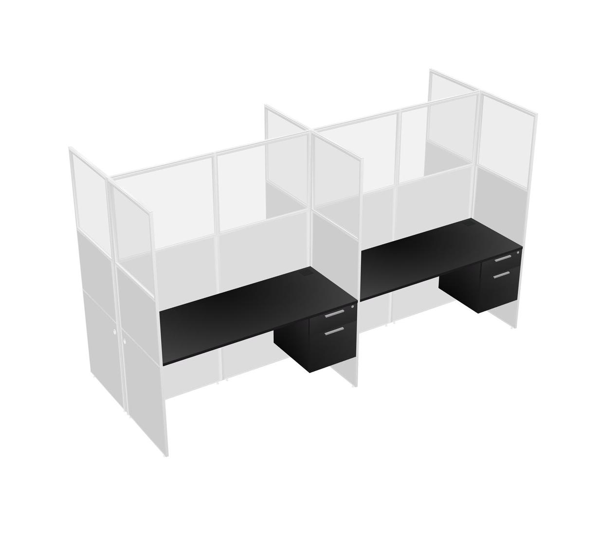 Black Shared Rectangular Office Cubicle Panel System With Hanging Drawers For 4 Persons