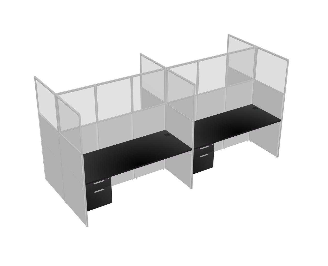 Black Shared Rectangular Office Cubicle Panel System With Hanging Drawers For 4 Persons