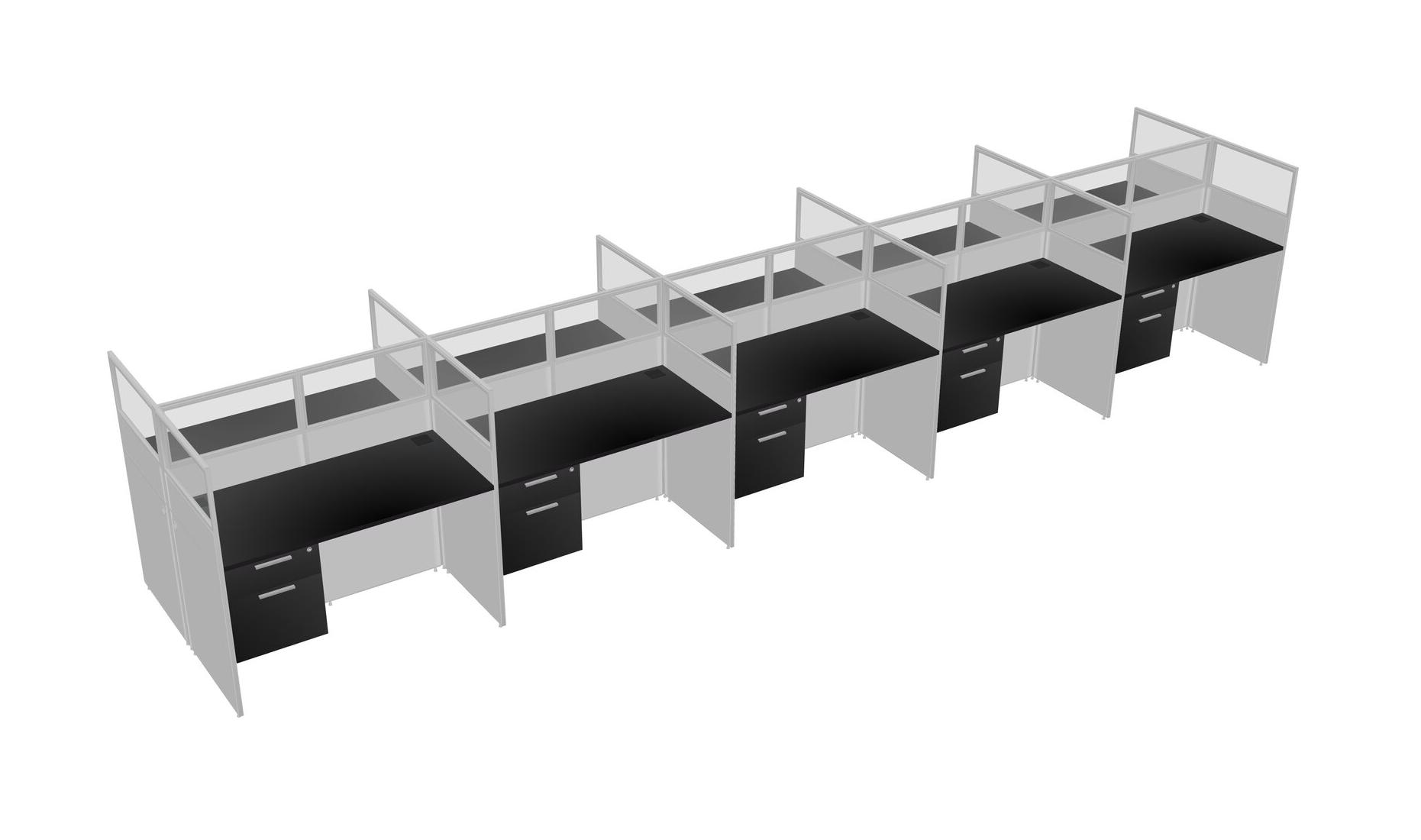 Black Shared Rectangular Office Cubicle Panel System With Hanging Drawers For 10 Persons