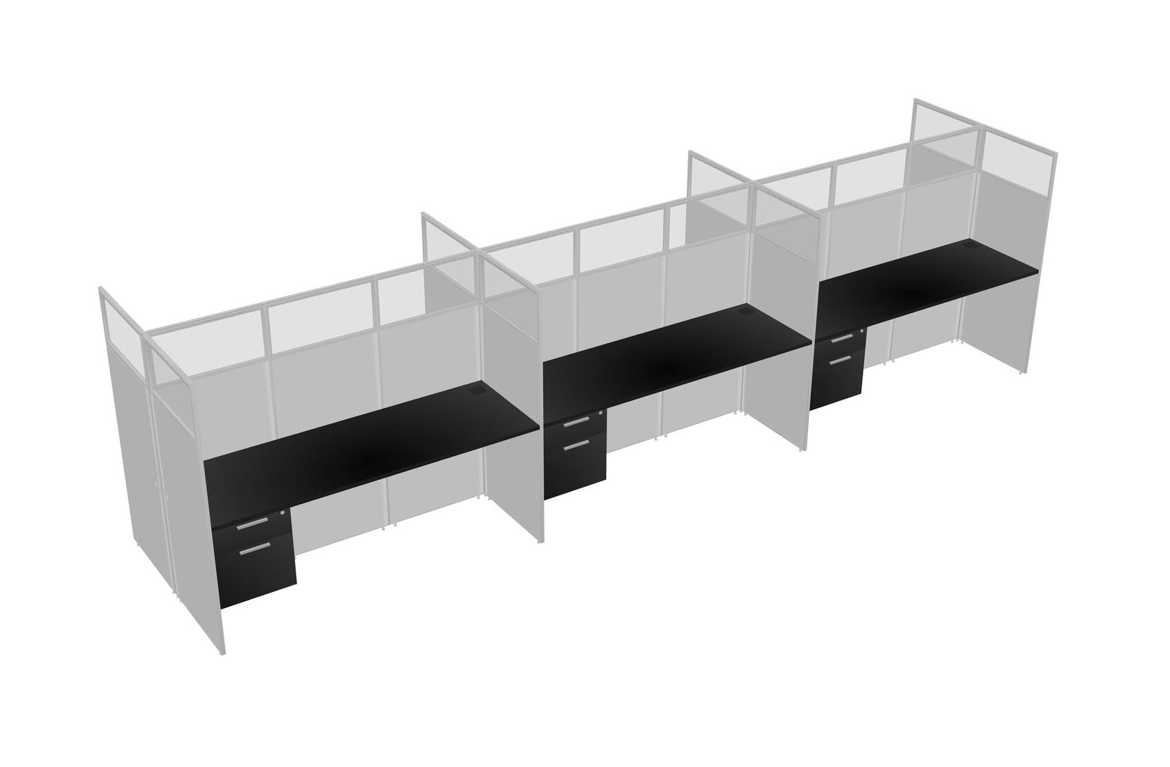 Black Shared Rectangular Office Cubicle Panel System With Hanging Drawers For 6 Persons