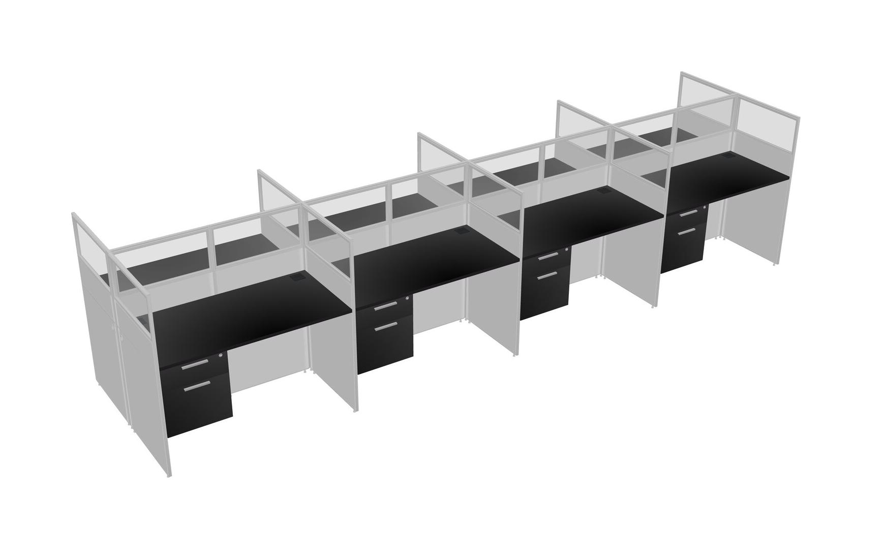 Black Shared Rectangular Office Cubicle Panel System With Hanging Drawers For 8 Persons