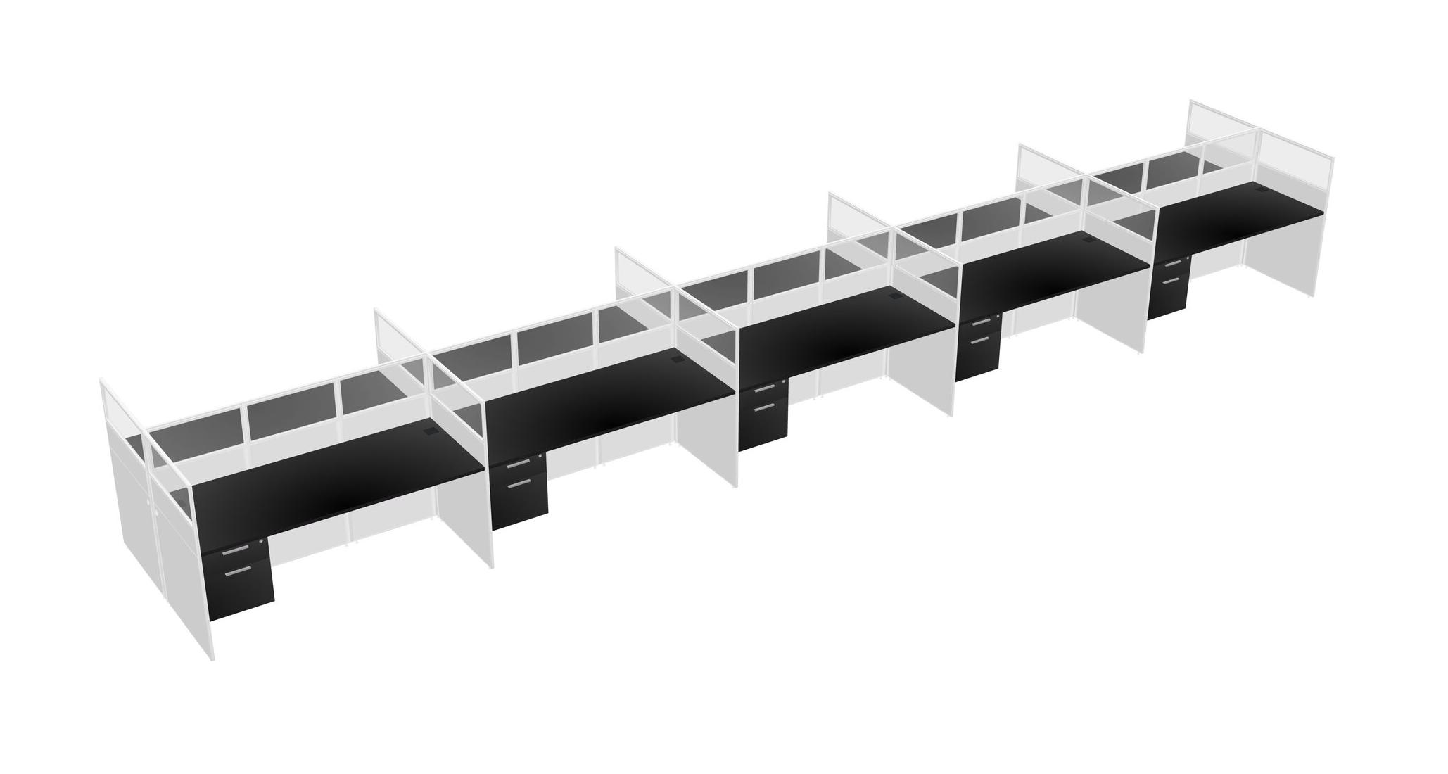 Black Shared Rectangular Office Cubicle Panel System With Hanging Drawers For 10 Persons