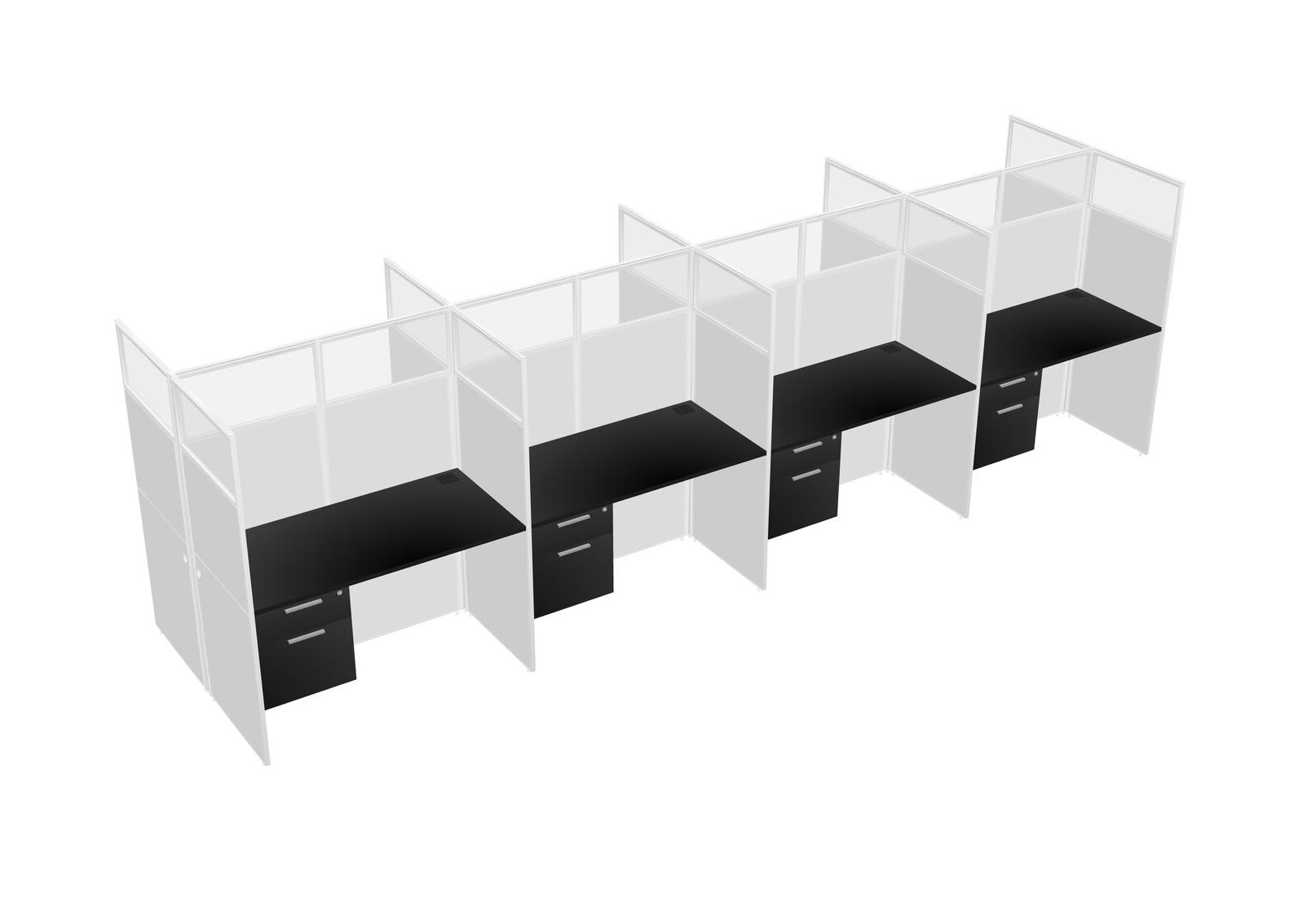 Black Shared Rectangular Office Cubicle Panel System With Hanging Drawers For 8 Persons
