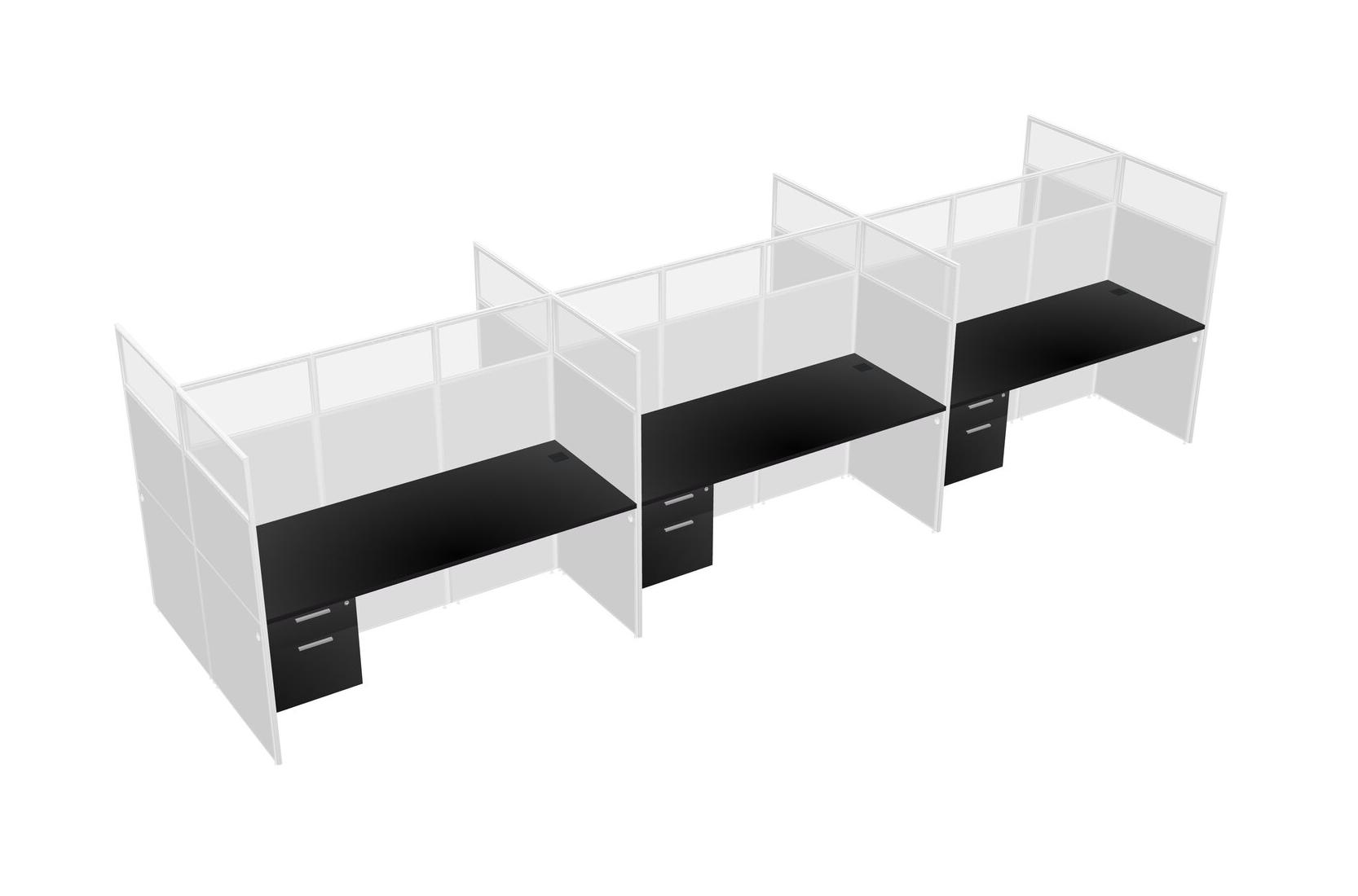 Black Shared Rectangular Office Cubicle Panel System With Hanging Drawers For 6 Persons