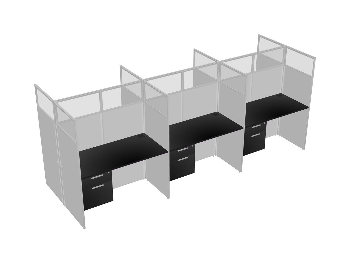 Black Shared Rectangular Office Cubicle Panel System With Hanging Drawers For 6 Persons