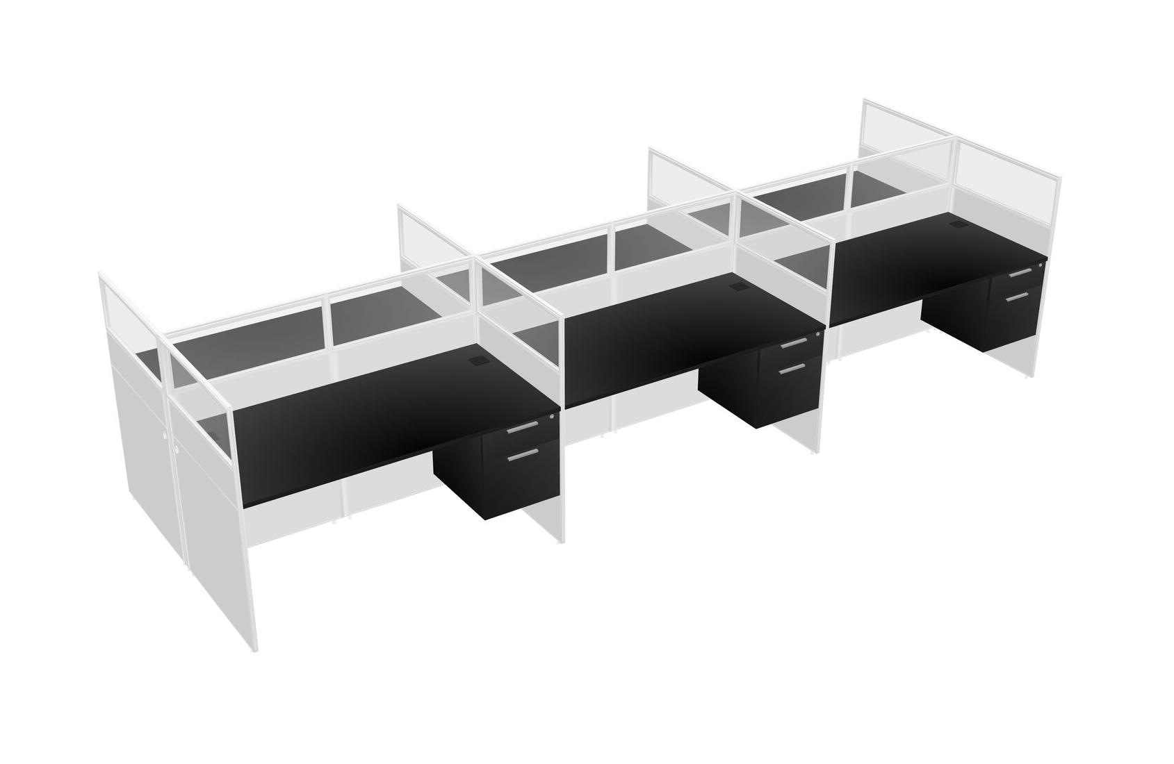 Black Shared Rectangular Office Cubicle Panel System With Hanging Drawers For 6 Persons