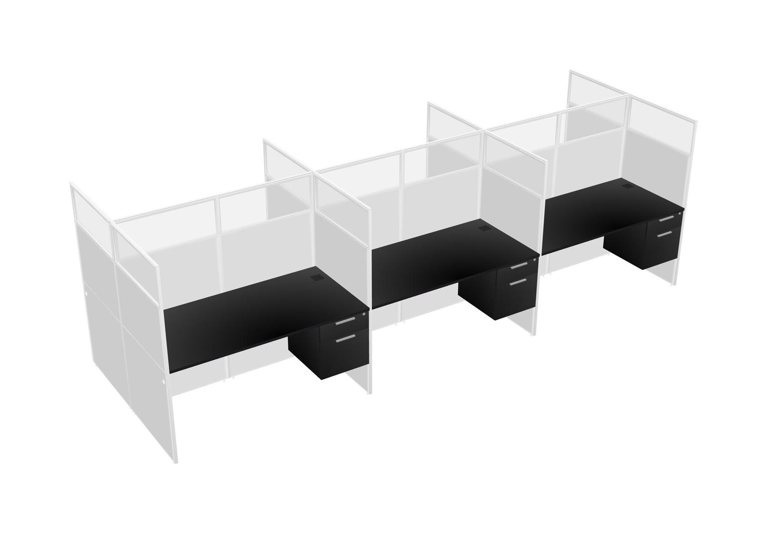 Black Shared Rectangular Office Cubicle Panel System With Hanging Drawers For 6 Persons