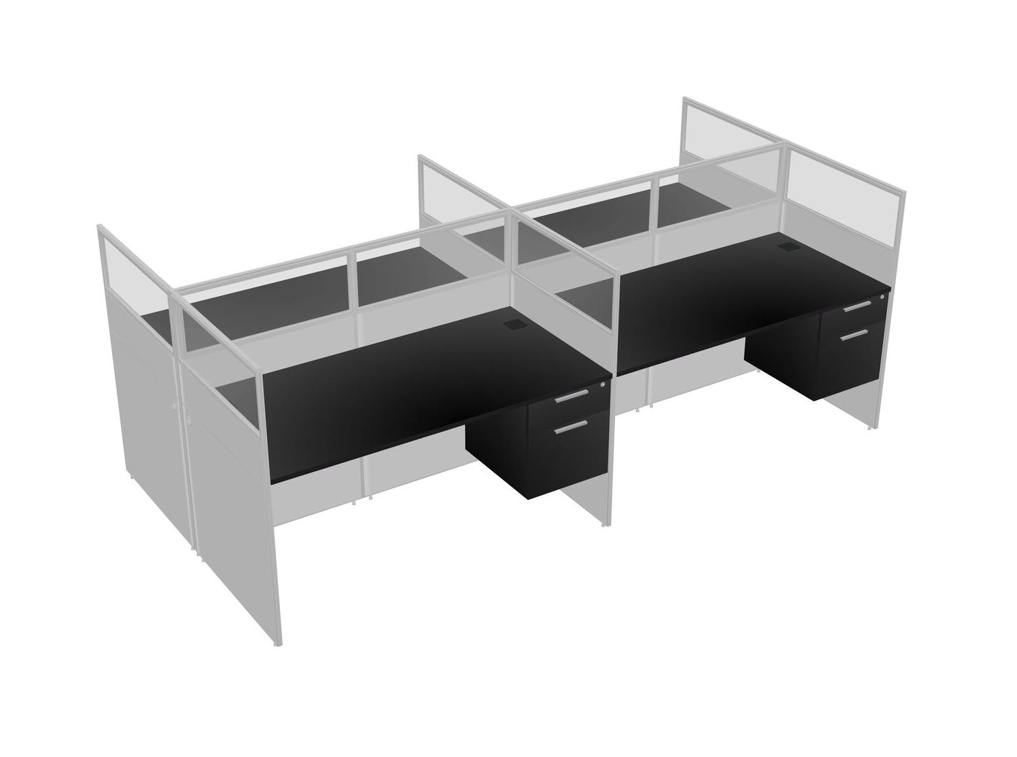 Black Shared Rectangular Office Cubicle Panel System With Hanging Drawers For 4 Persons