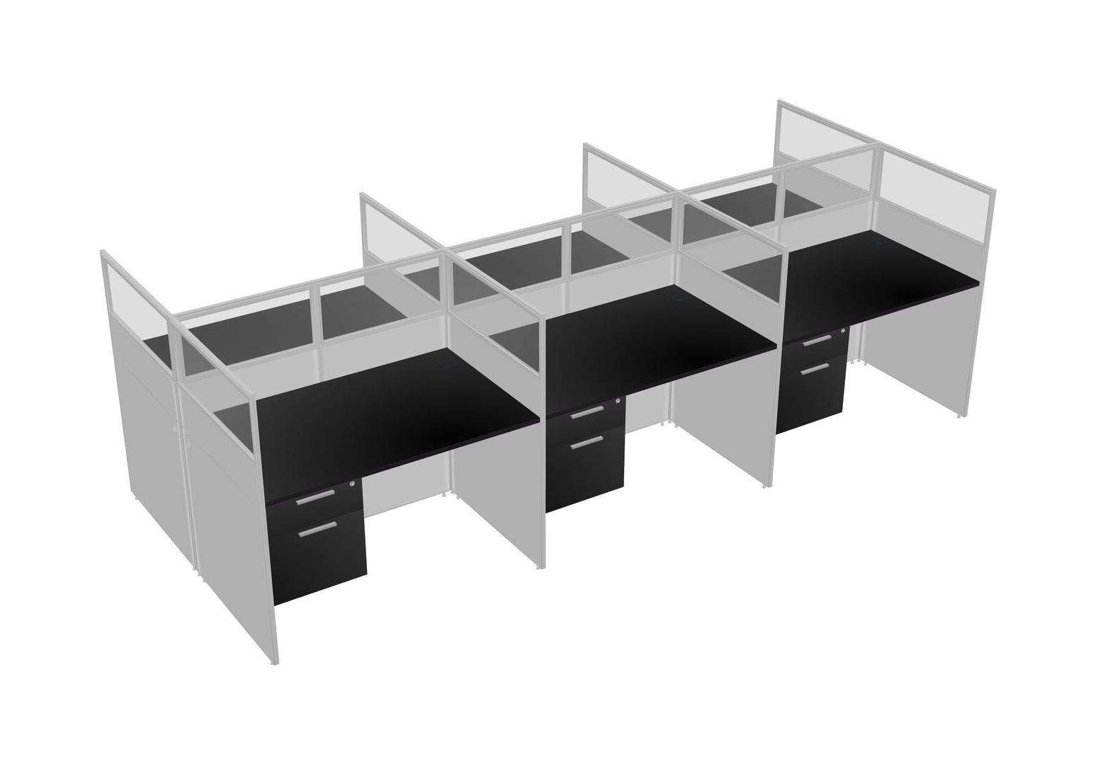 Black Shared Rectangular Office Cubicle Panel System With Hanging Drawers For 6 Persons