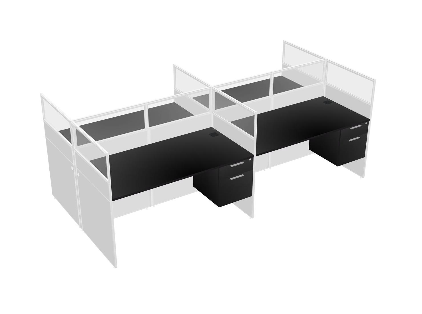 Black Shared Rectangular Office Cubicle Panel System With Hanging Drawers For 4 Persons