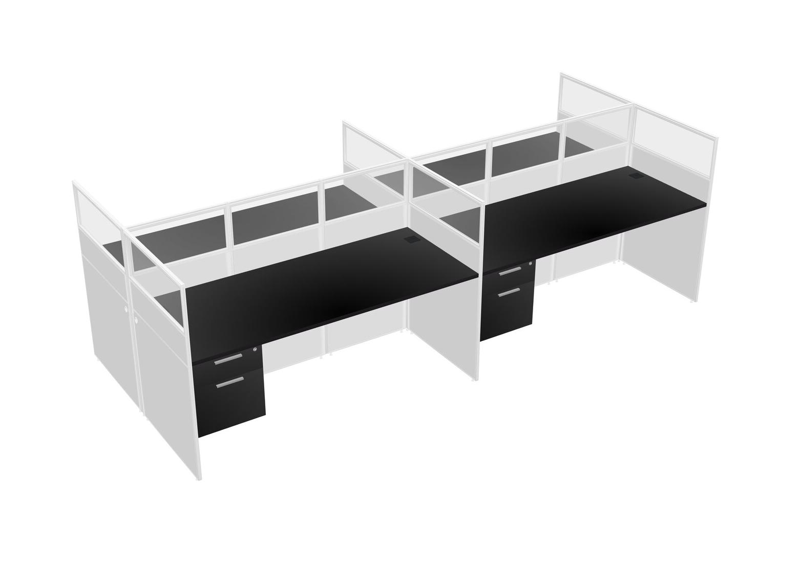 Black Shared Rectangular Office Cubicle Panel System With Hanging Drawers For 4 Persons