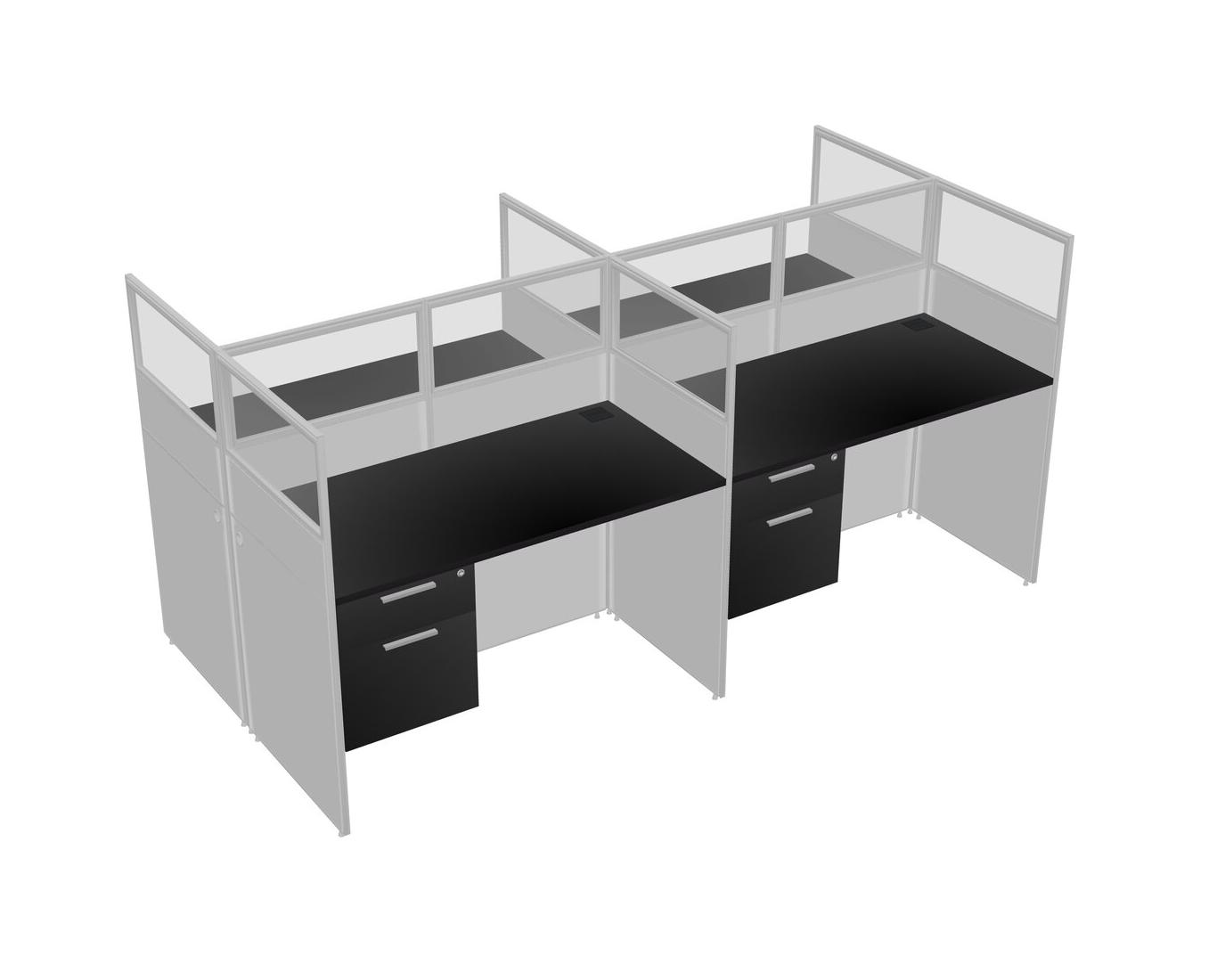 Black Shared Rectangular Office Cubicle Panel System With Hanging Drawers For 4 Persons