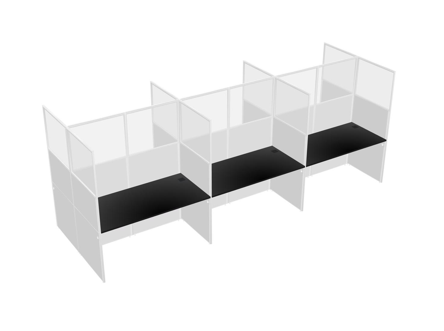 Black Shared Rectangular Office Cubicle Panel System For 6 Persons