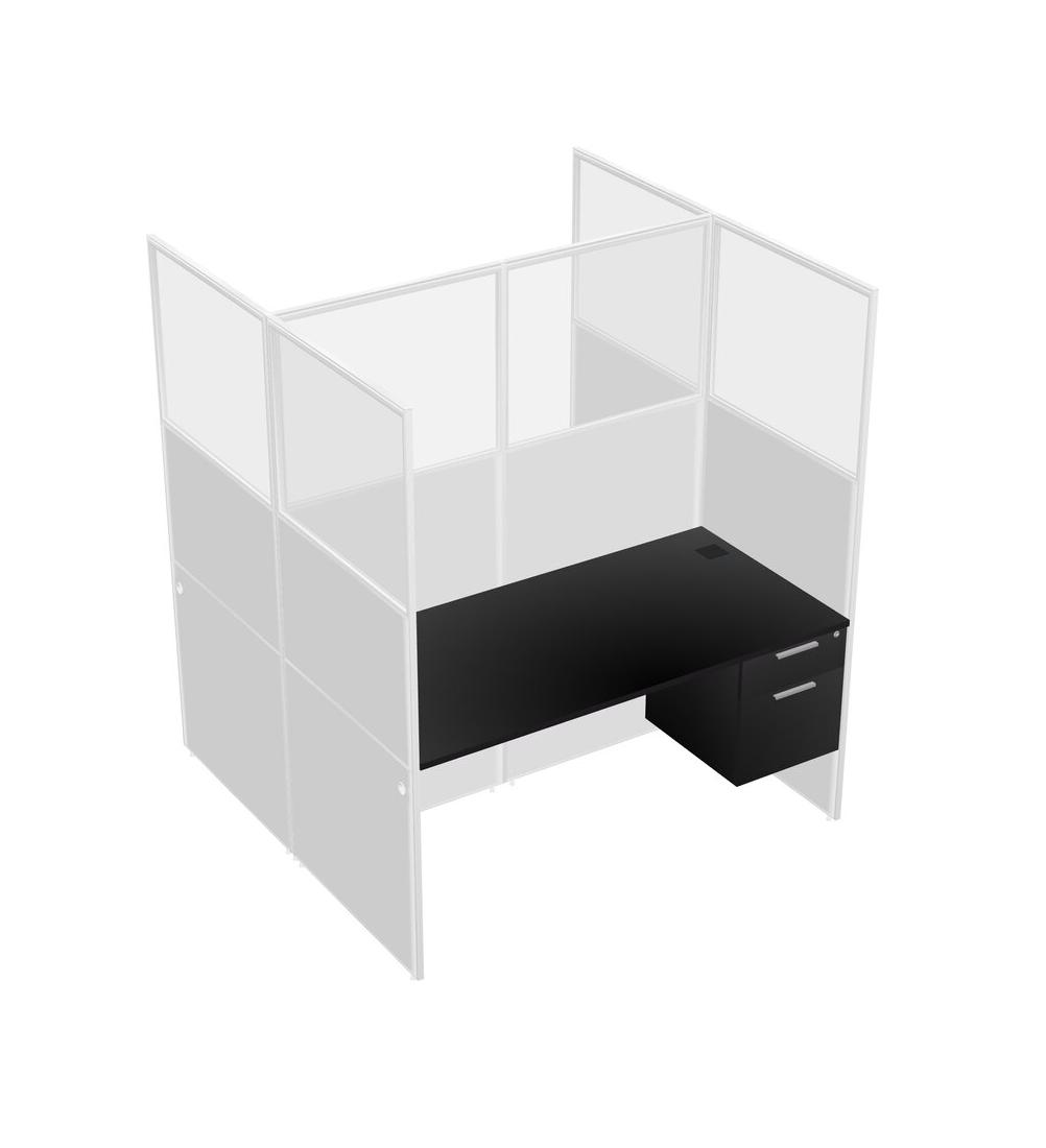 Black Shared Rectangular Office Cubicle Panel System With Hanging Drawers For 2 Persons