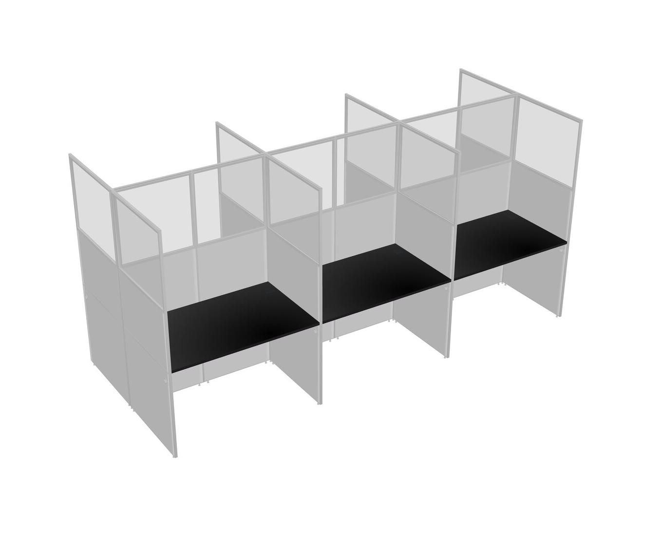 Black Shared Rectangular Office Cubicle Panel System For 6 Persons