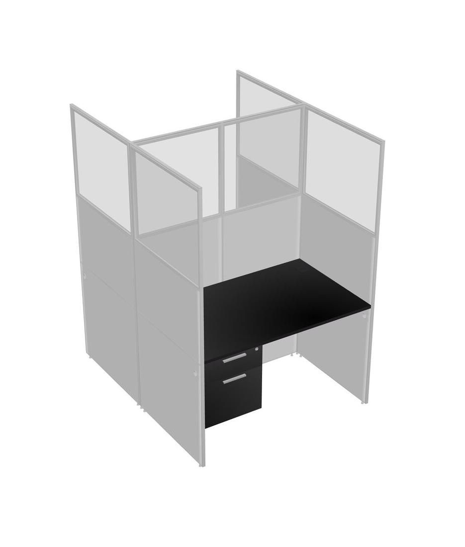 Black Shared Rectangular Office Cubicle Panel System With Hanging Drawers For 2 Persons